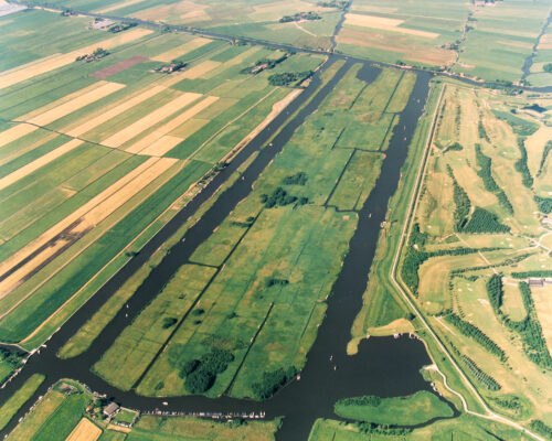 Previous Image Next Image LezingVlietlanden01 Luchtfoto van de Vlietlanden (in het midden) vóór 1989.
