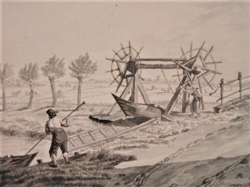 Een windas in de Alblasserwaard, anonieme tekening, ca. 1800.